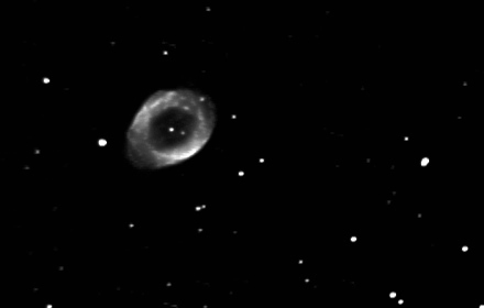 A lot more detail has emerged in M57 itself, and it now stands out nicely from the background. The typical banding from the SAC-8 in hi-res mode is showing up quite a bit now. It will be removed in the next step. Also, note that if